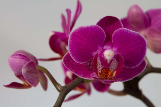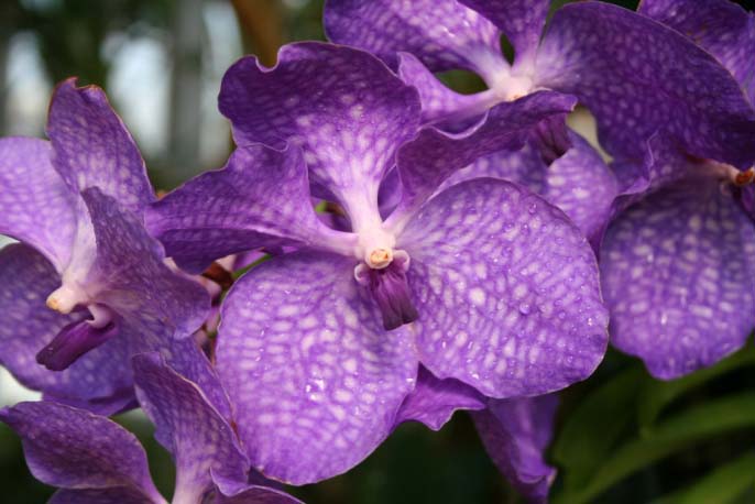 При более низких параметрах влажности воздуха у растения может наблюдаться вялость листьев и опадание цветков. Обильное и частое опрыскивание провоцирует гниение растения. Стимулировать гниение могут и переизбыточные поливы, а также высокая влажность в воздухе. Фиолетовые орхидеи требуется подкармливать не чаще одного раза в месяц. Непосредственно после цветения уже засыхающие цветоносы необходимо отрезать.