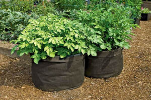 Другой способ: в специальный мешок насыпаете 10 см почвы и кладете проросший клубень. Когда отростки, достигнут 7 см, посыпаете почву, и окучиваете, и так пока почва не поднимется до отметки 10 см от верхнего края мешка.